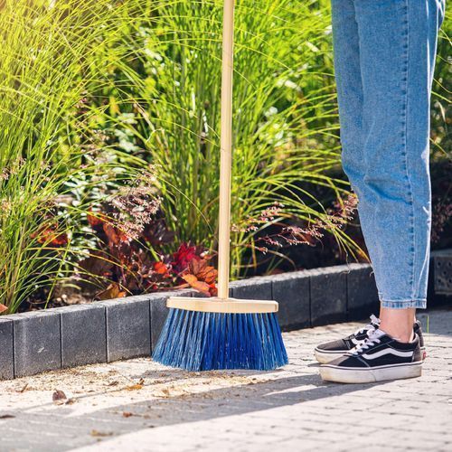 KADAX Besen, Gartenbesen mit Stiel aus Holz, Straßenbesen. Dunkelblau, 31 cm