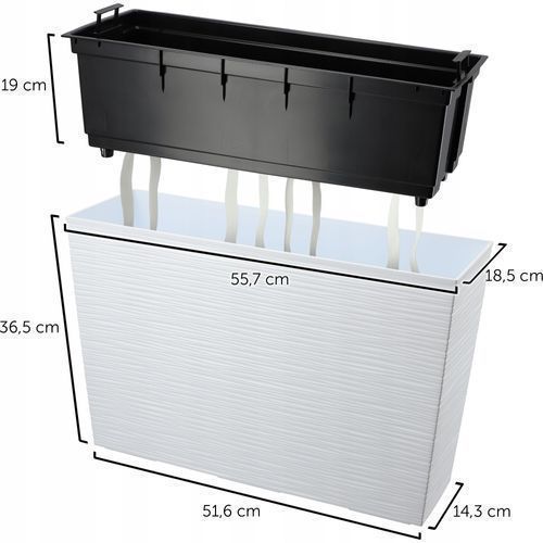 KADAX Blumenkasten aus Kunststoff, Balkonkasten mit Einsatz, 56 cm, Weiß