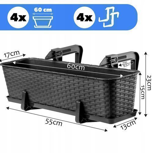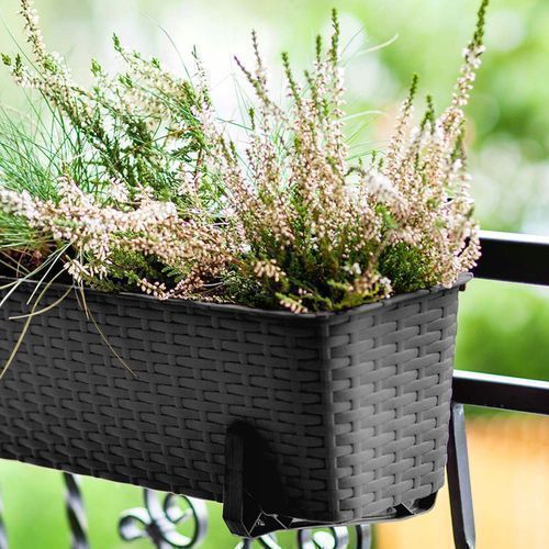 KADAX Blumenkasten-Set, Balkonkasten Set aus Kunststoff, 60cm, Anthrazit