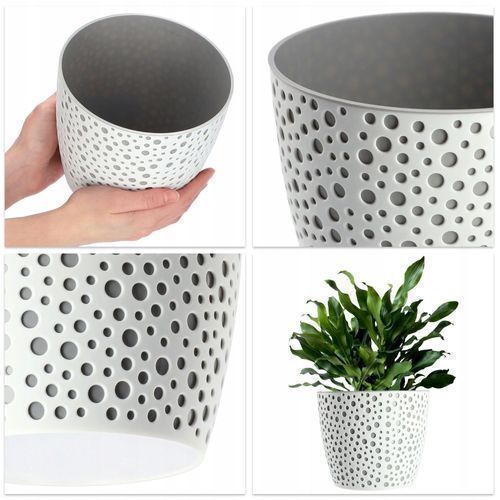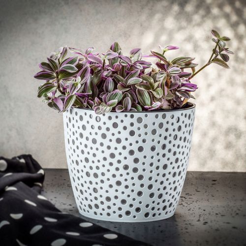 • KADAX Blumentopf aus Kunststoff mit Naturmaterialien, 14.5 cm, Weiß