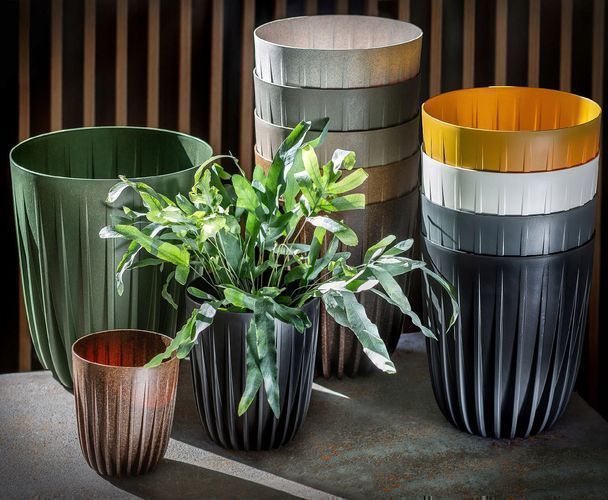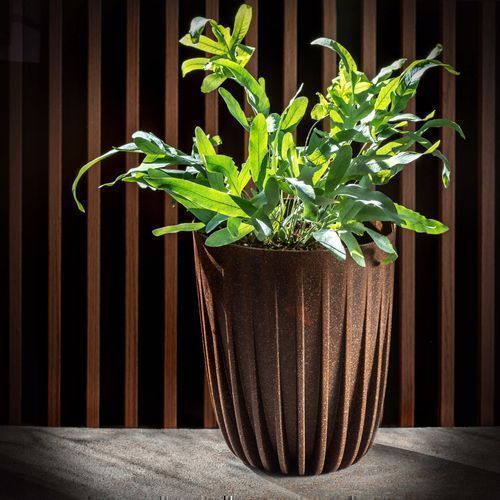 KADAX Blumentopf aus Kunststoff mit Naturmaterialien, 19 cm, Dunkelbraun