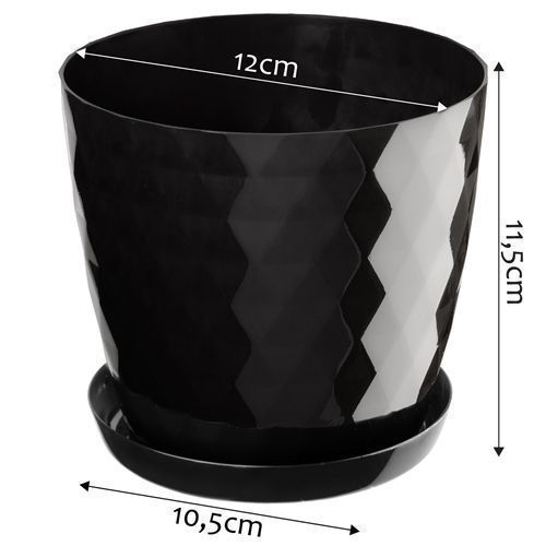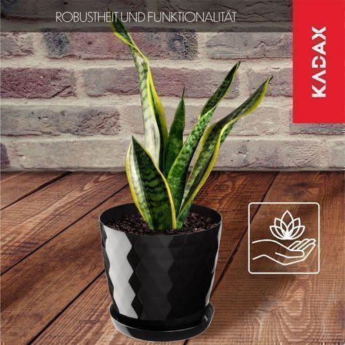 KADAX Blumentopf, Ein Topf für Blumen mit Untersetzer, 12cm, Schwarz