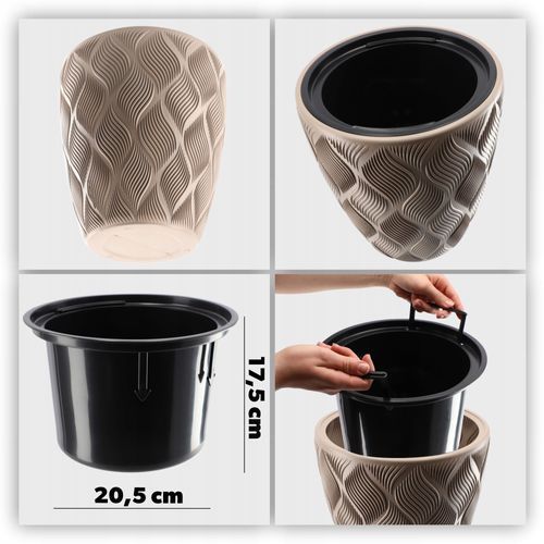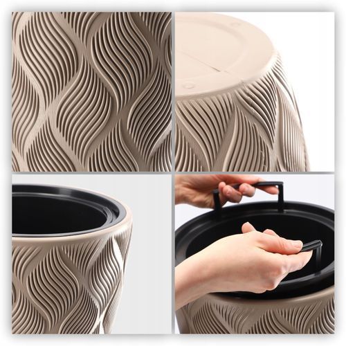 KADAX Blumentopf mit Einsatz und Griffen, Pflanzkübel, Beige