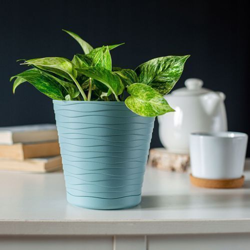 KADAX Blumentopf mit Untersetzer, aus Kunststoff, rund, 30 cm, Pfefferminz
