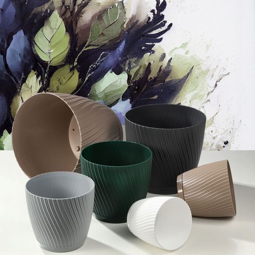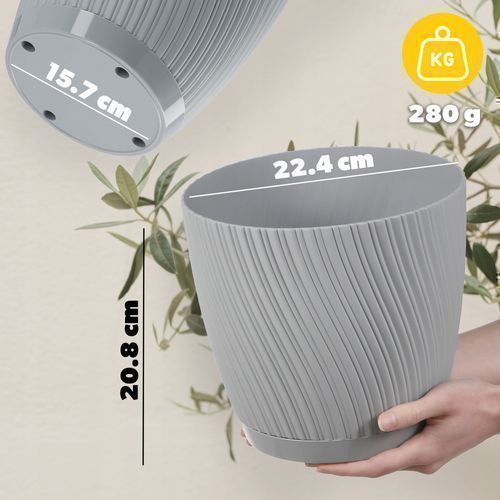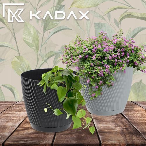 KADAX Blumentopf mit Untersetzer, Pflanzentopf, aus Kunststoff, 23 cm, Grau