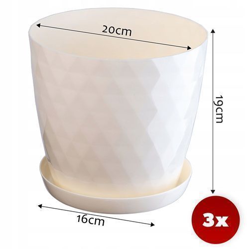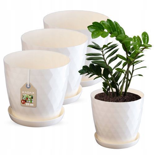 KADAX Blumentopf mit Untersetzer, Topf für Blumen, Rund, 20 cm, Creme, 3 Stück