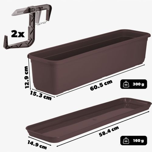 KADAX Blumentopf mit Untersetzer und Griffen, 60 cm, Braun