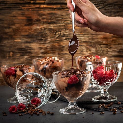 KADAX Eisbecher Glas Set, Eisschalen, Dessertgläser mit Fuß 6, 300 ml