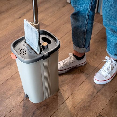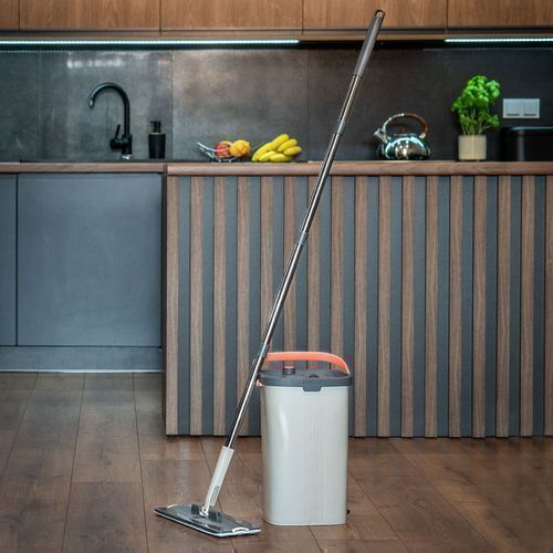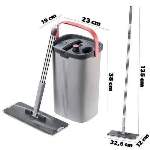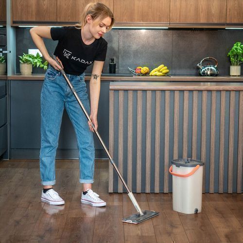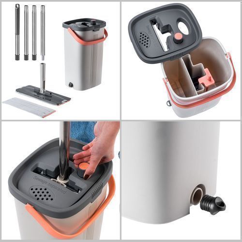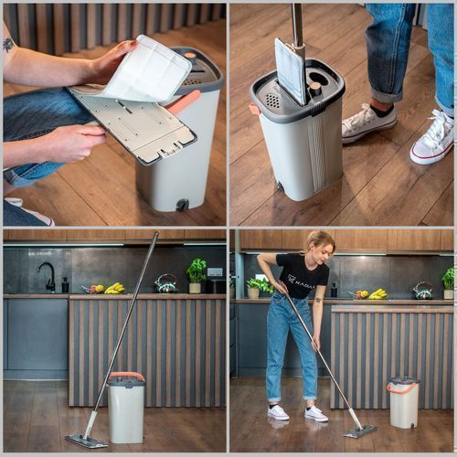 KADAX Flachmopp mit Wassertrennung, Wischmopp mit Doppelkammereimer