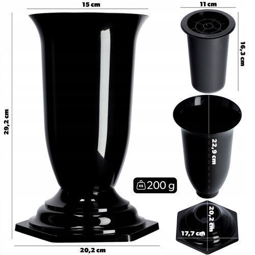 KADAX Grabvase aus Kunststoff, Blumenvase mit einlage, 15 cm, Schwarz