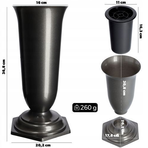 KADAX Grabvase aus Kunststoff, Blumenvase, Steckvase für Grab, 15.5 cm, grafit