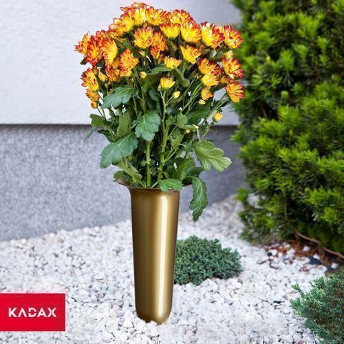 • KADAX Grabvase, Blumenvase, Kunststoff-Vase, 13.5 cm, mit Erdspieß, gold
