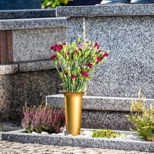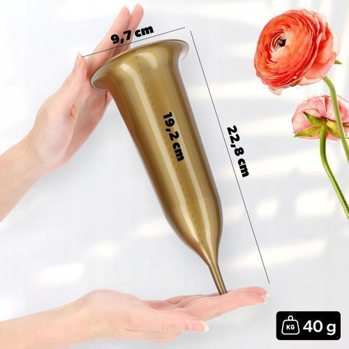 • KADAX Grabvase, Blumenvase, Kunststoff-Vase, 12 cm, mit Erdspieß, gold