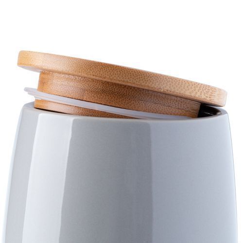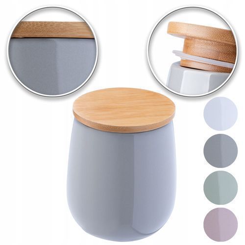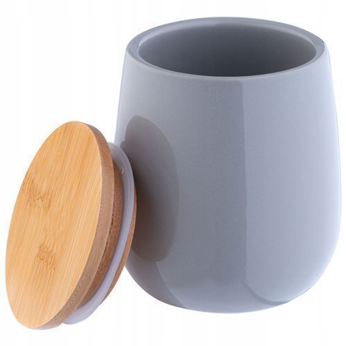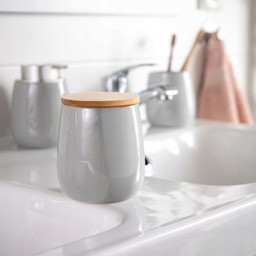 KADAX Kosmetikdose, Aufbewahrungsdose aus Keramik, mit Deckel aus Bambus, Grau