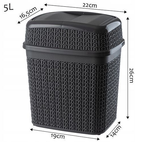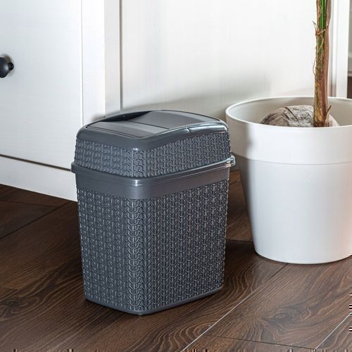 KADAX Kosmetikeimer aus Kunststoff, Abfalleimer mit Schwingdeckel, 5L, anthrazit