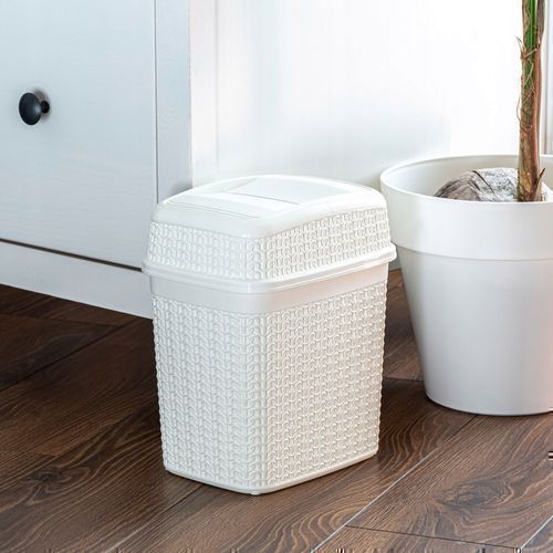 KADAX Kosmetikeimer aus Kunststoff, Abfalleimer mit Schwingdeckel, 5L, weiß
