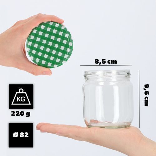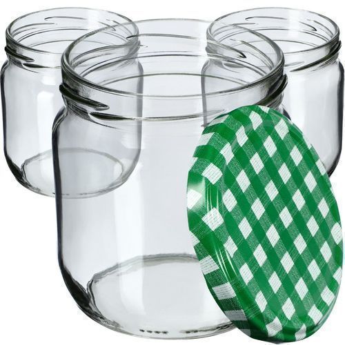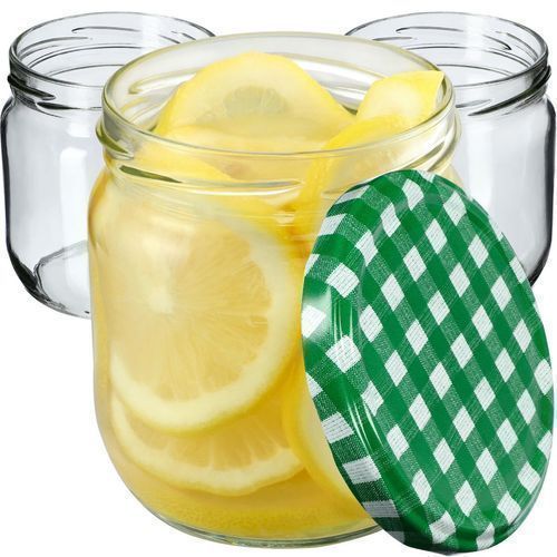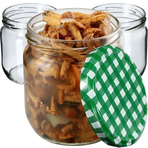 KADAX Marmeladengläser 425ml, Einmachgläser (Grün kariert / 12 Stück)