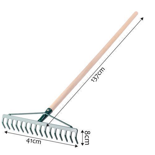• KADAX Rechen aus Stahldraht, breite Harke mit langem Stiel aus Holz, 20 Zinken
