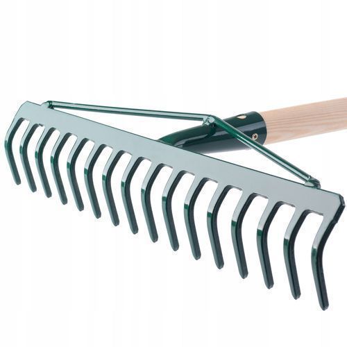 • KADAX Rechen aus Metall, flache Harke mit Stiel aus Holz, Grün, 16 Zinken