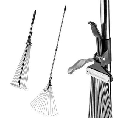 • KADAX Rechen, Laubrechen, regulierbare Harke mit Stiel für Garten, Rasen, Draht