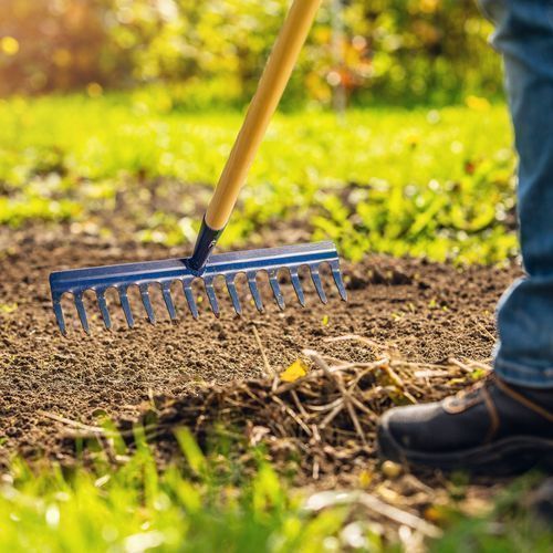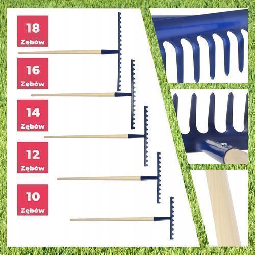 KADAX Rechen, breite Harke mit verstärktem Kopf, Laubbesen aus Metall,10 Zinken