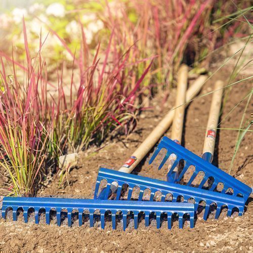 KADAX Rechen, breite Harke mit verstärktem Kopf, Laubbesen aus Metall,14 Zinken