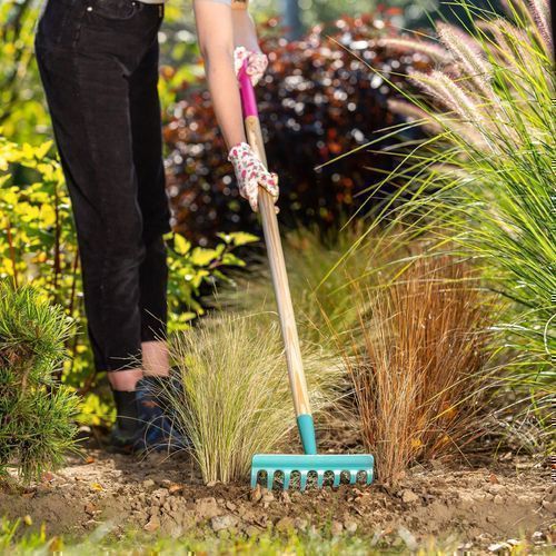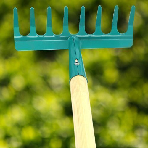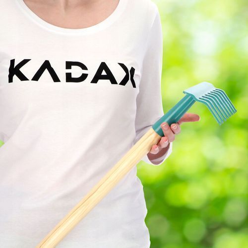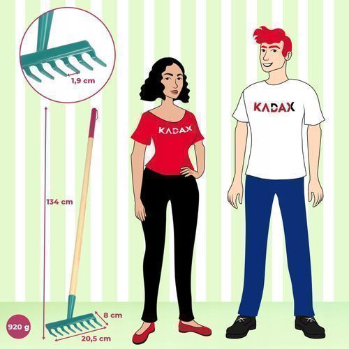 KADAX Rechen, Harke für Damen, flache Harke mit langem Stiel, 8 Zinken