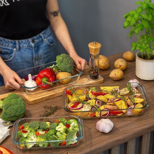 KADAX rechteckige Auflaufform aus Glas, Geschirr zum Braten, Transparent, 2.2L