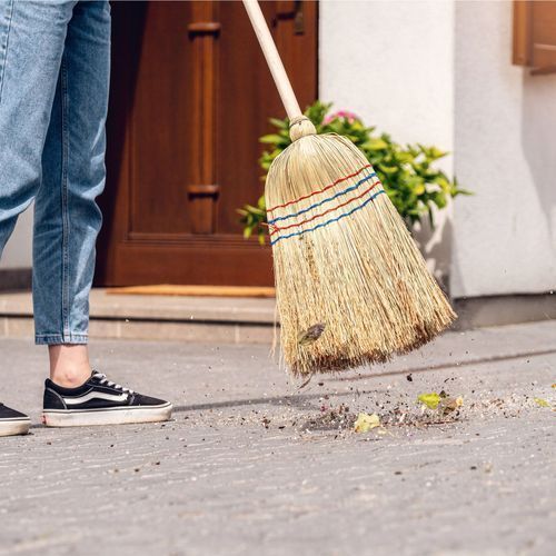 KADAX Reisstrohbesen, Reisigbesen, Besen mit langem Stiel aus Holz, 140 cm