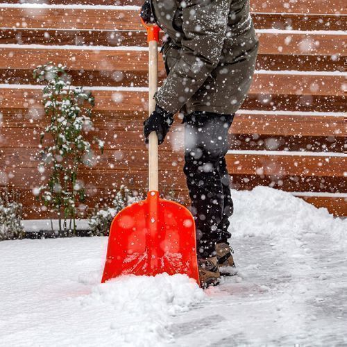 KADAX Schneeschaufel, Schaufel mit Holzstiel, Schneeschieber, 38 cm, Orange
