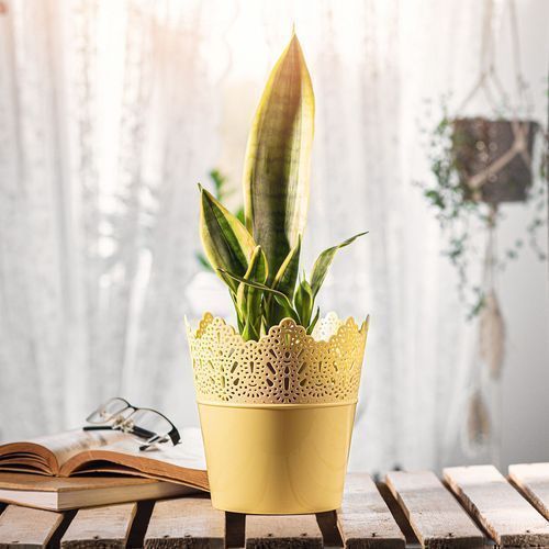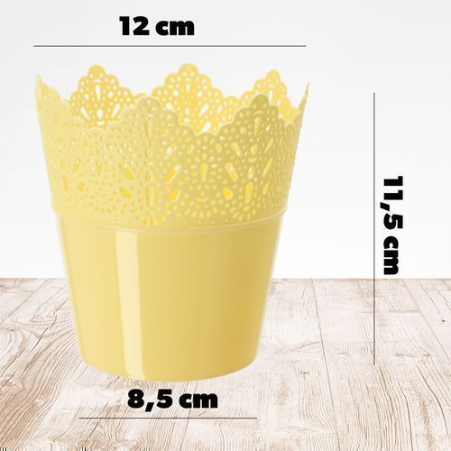 KADAX Spitzen-Blumentopf aus Kunststoff, 12 cm, Niedrig, Gelb