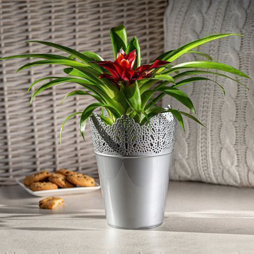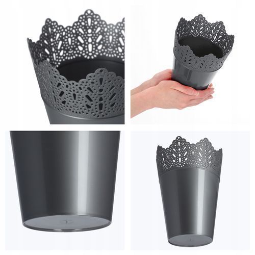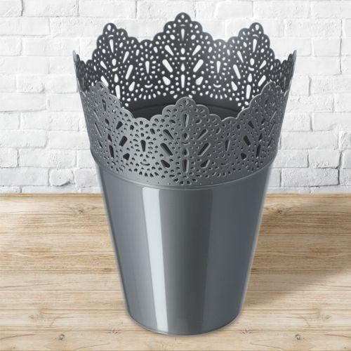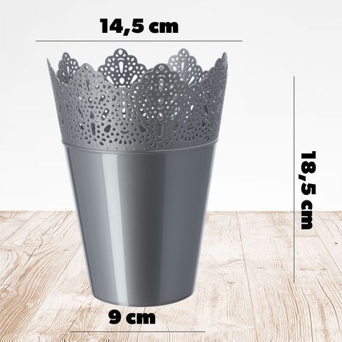 KADAX Spitzen-Blumentopf aus Kunststoff, 14.5 cm, Hoch, Silber