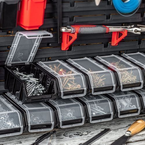 KADAX Stapelkiste mit Deckel, aus PP Kunststoff, Schwarz, 10 Stück, 195 x 120 mm