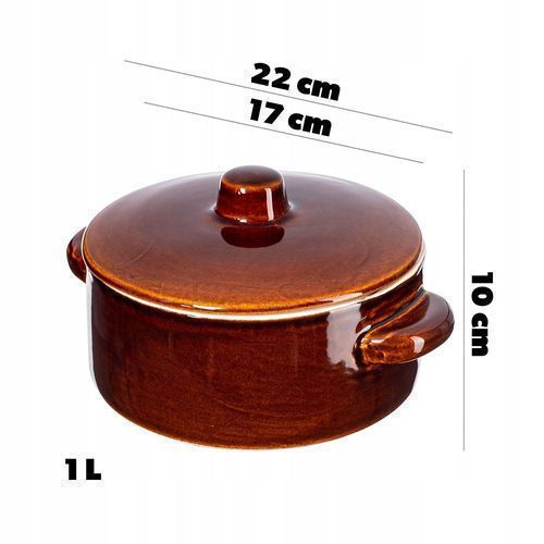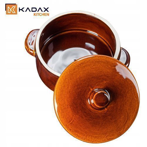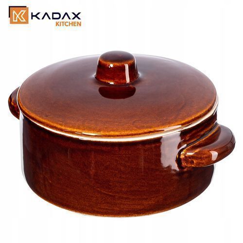 KADAX Steinzeugtopf, Keramiktopf mit Seitengriffen und Deckel, 1L, Niedrig