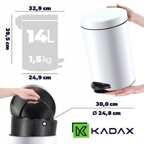 KADAX Tretmülleimer, Mülleimer mit Stahl Kosmetikeimer, 14L, Weiß