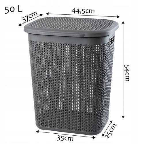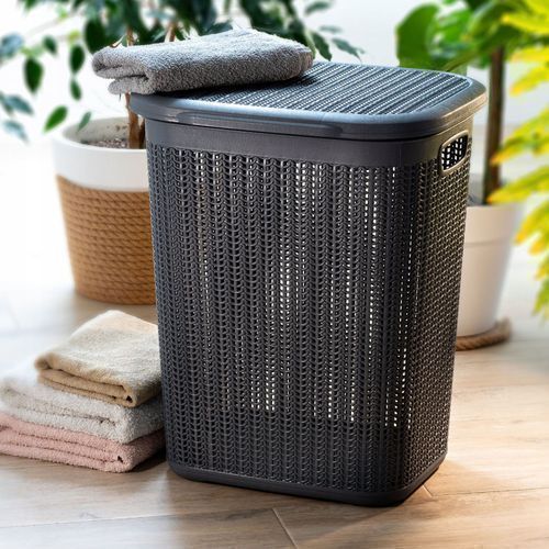 KADAX Wäschekorb, mit Deckel, Wäschesortierer aus Kunststoff, 50L, Anthrazit