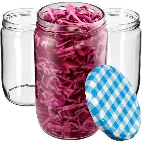 KADAX Weckgläser 720 ml, Einmachglas zum Einlegen, Blau kariert / 8 Stück