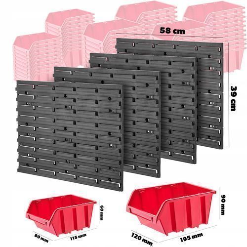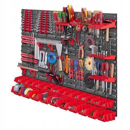 KADAX Werkstattwandregal, Wandplatten, 116 x 78 cm, Rot, 67 tlg