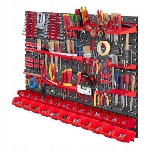 KADAX Werkstattwandregal, Wandplatten, 116 x 78 cm, Rot, 70 tlg