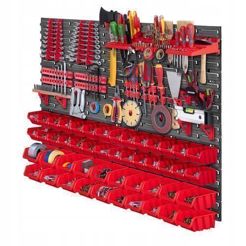 KADAX Werkstattwandregal, Wandplatten, 116 x 78 cm, Rot, 89 tlg