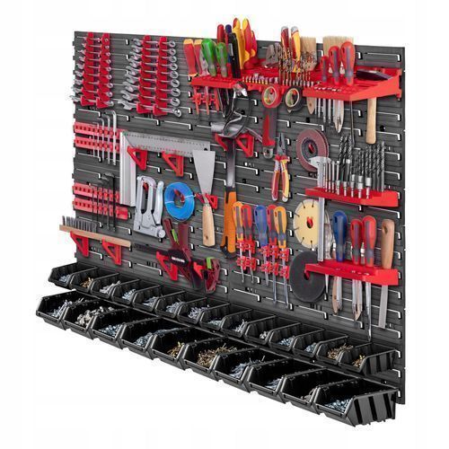 KADAX Werkstattwandregal, Wandplatten, 116 x 78 cm, Rot und Schwarz, 67 tlg