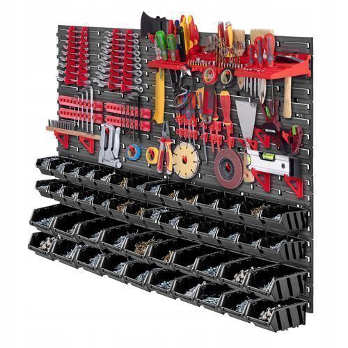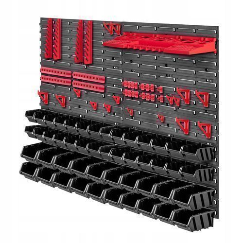KADAX Werkstattwandregal, Wandplatten, 116 x 78 cm, Rot und Schwarz, 89 tlg