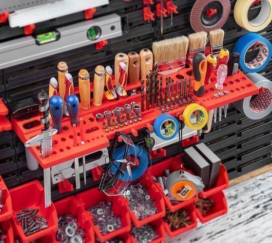 KADAX Werkstattwandregal, Wandplatten, 174 x 78 cm, Rot, 110 tlg