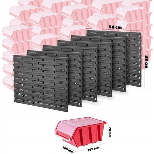 KADAX Werkstattwandregal, Wandplatten, 174 x 78 cm, Rot, 135 tlg