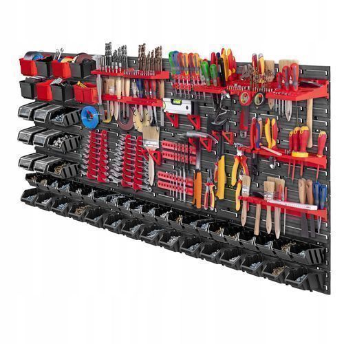 KADAX Werkstattwandregal, Wandplatten, 174 x 78 cm, Rot und Schwarz, 100 tlg