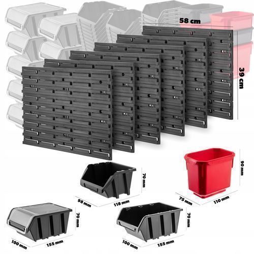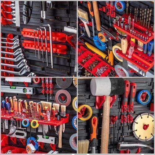 KADAX Werkstattwandregal, Wandplatten, 174 x 78 cm, Rot und Schwarz, 121 tlg
