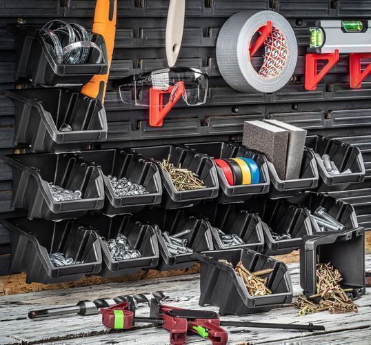 KADAX Werkstattwandregal, Wandplatten, 232 x 78 cm, Schwarz, 180 tlg