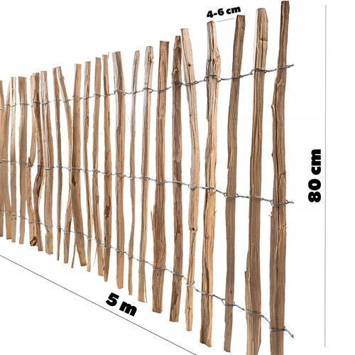 KADAX Zaun aus Hasel, Staketenzaun aus Haselnuss, Gartenzaun, 4-6cm, 80x500cm