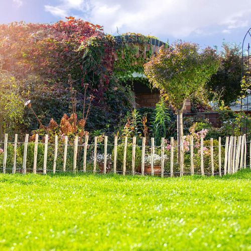 KADAX Zaun aus Hasel, Staketenzaun aus Haselnuss, Gartenzaun, 7-9cm, 80x500cm