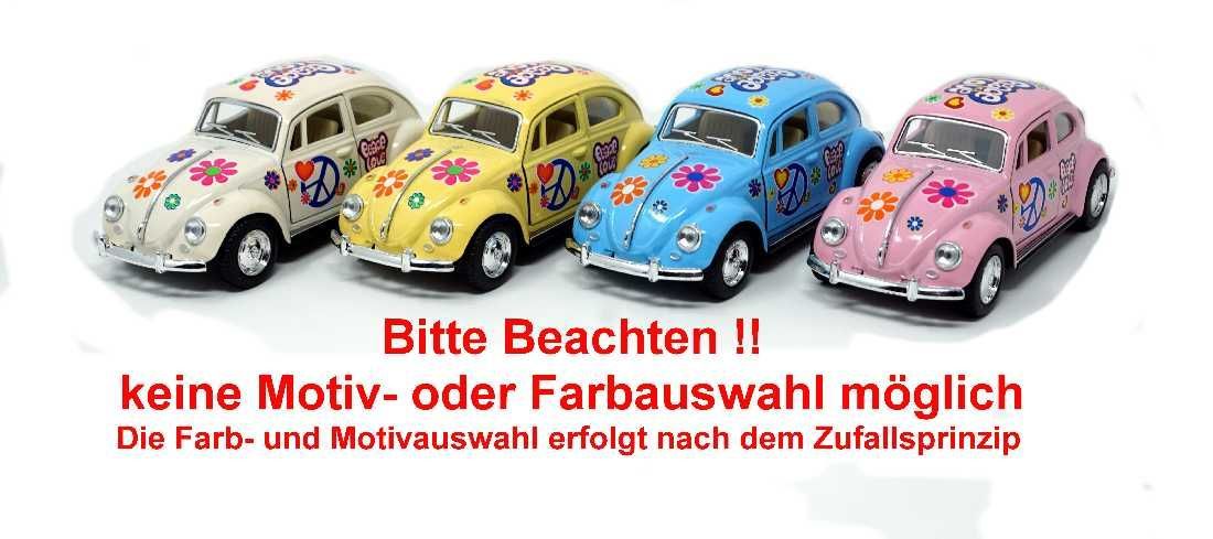Käfer Peace + Love Modellauto 12 cm mit Rückziehmotor vier Farben Zufallsauswahl